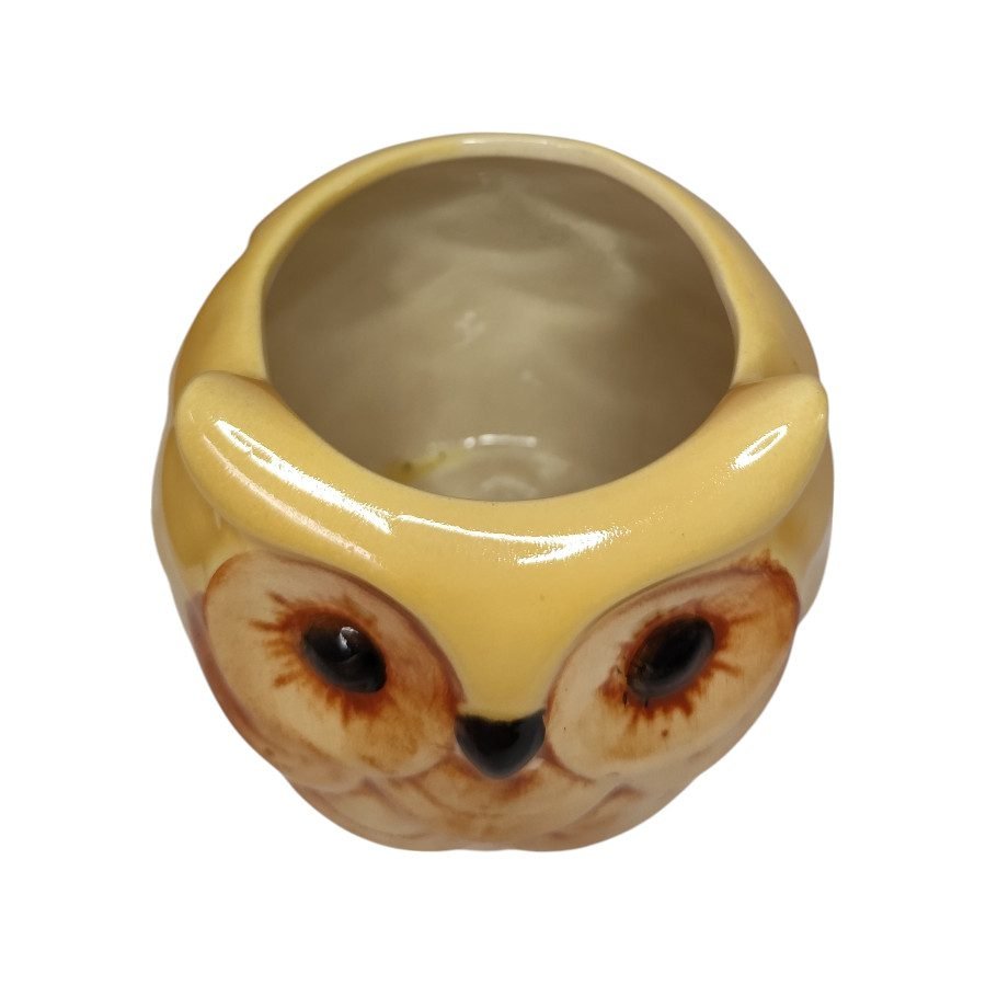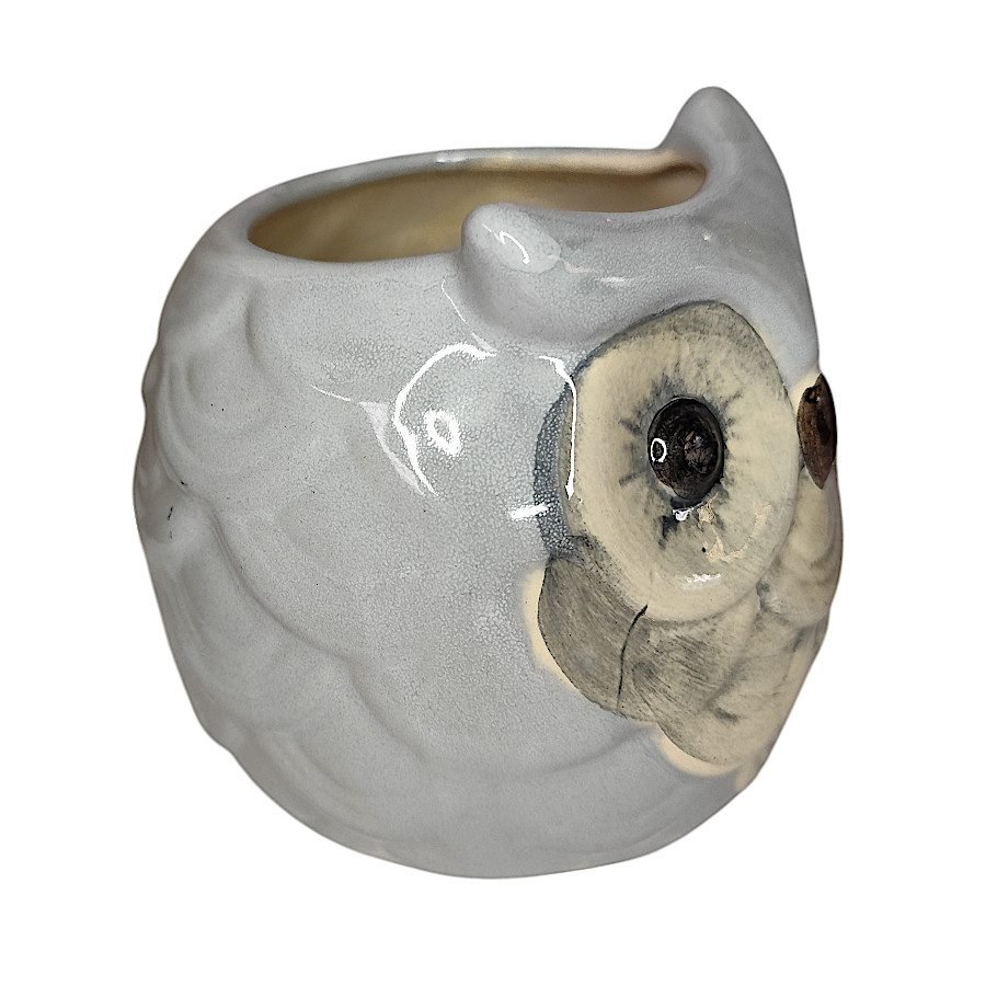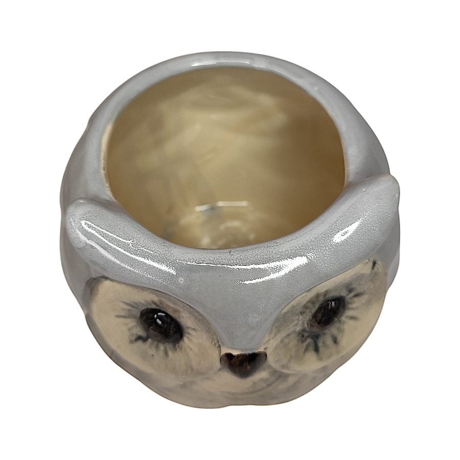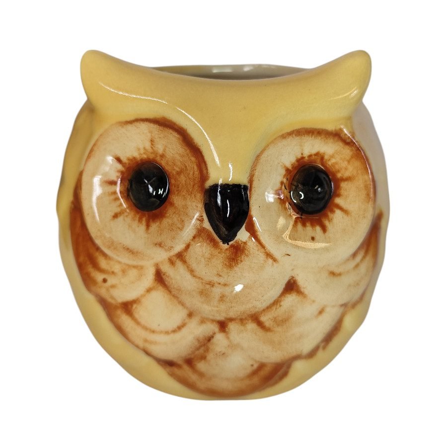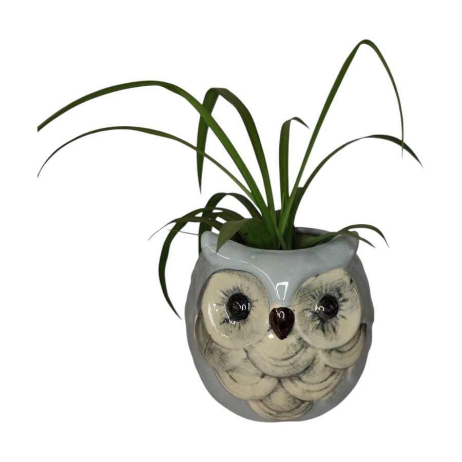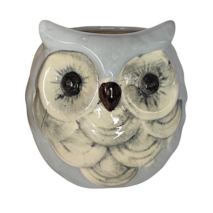 Dale un toque de arte y personalidad a tu hogar con esta maceta de cerámica pintada a mano en forma de búho.