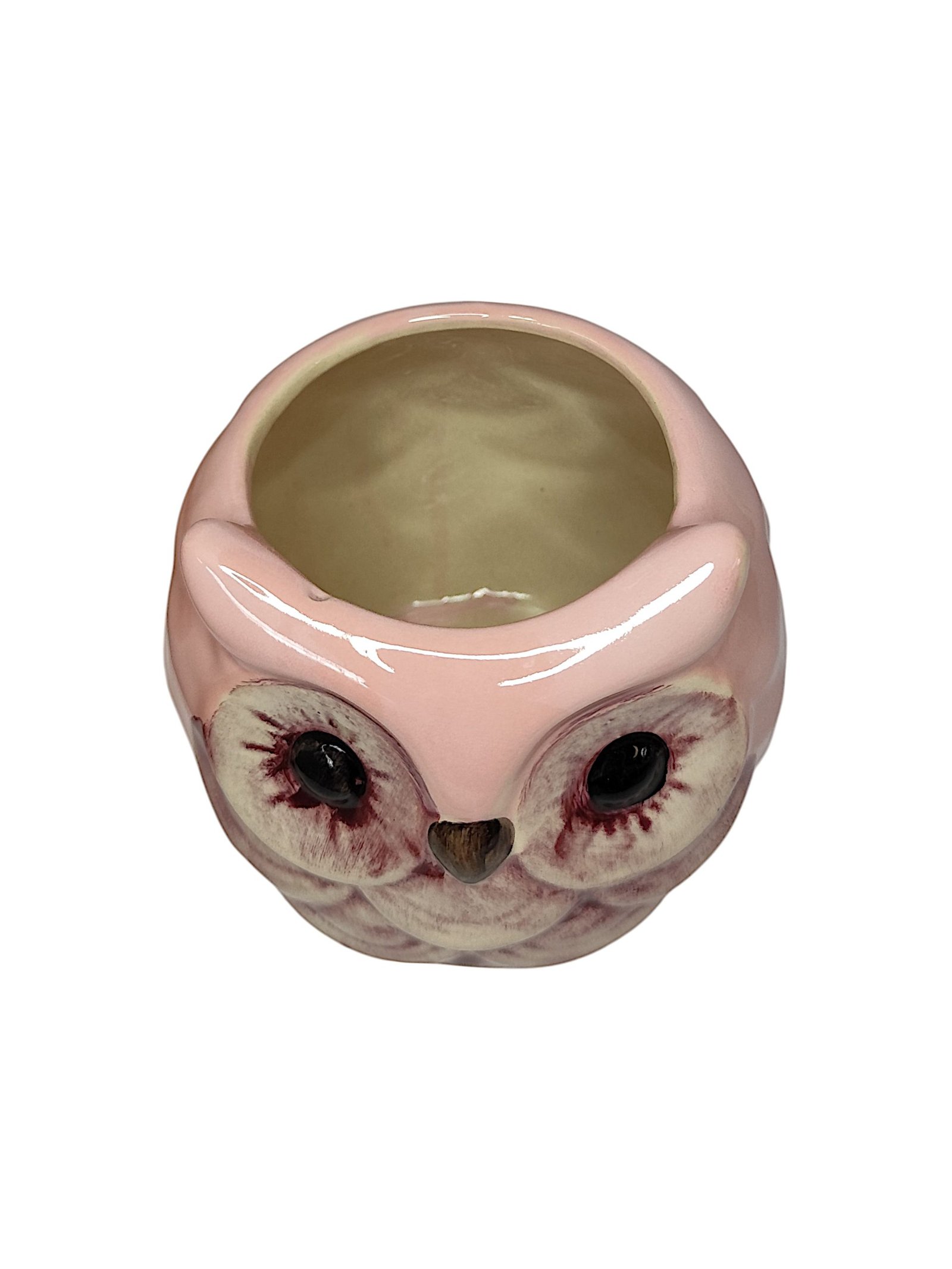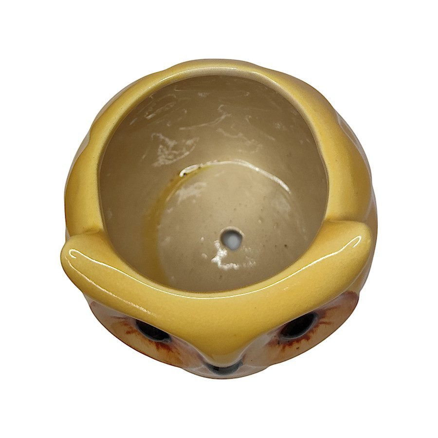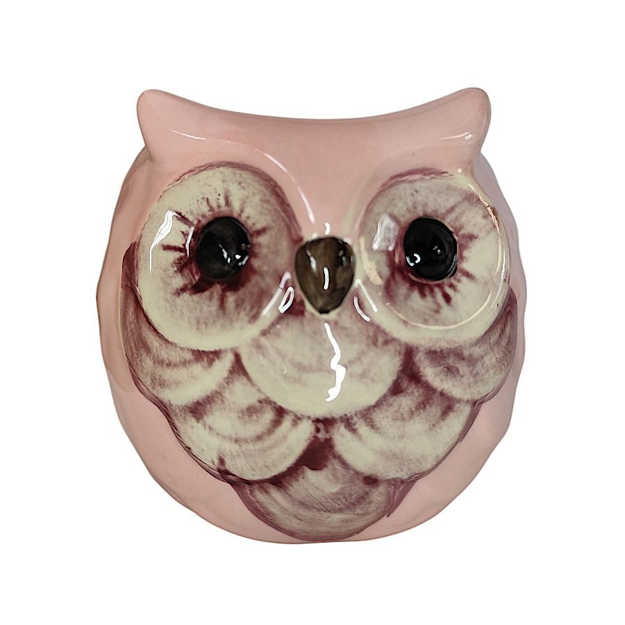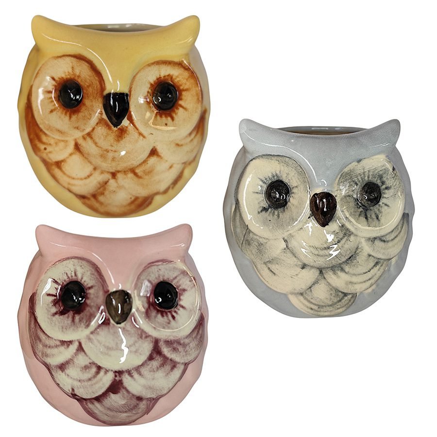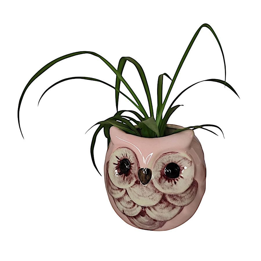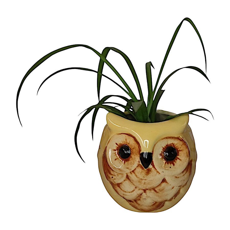 Dale un toque de arte y personalidad a tu hogar con esta maceta de cerámica pintada a mano en forma de búho.