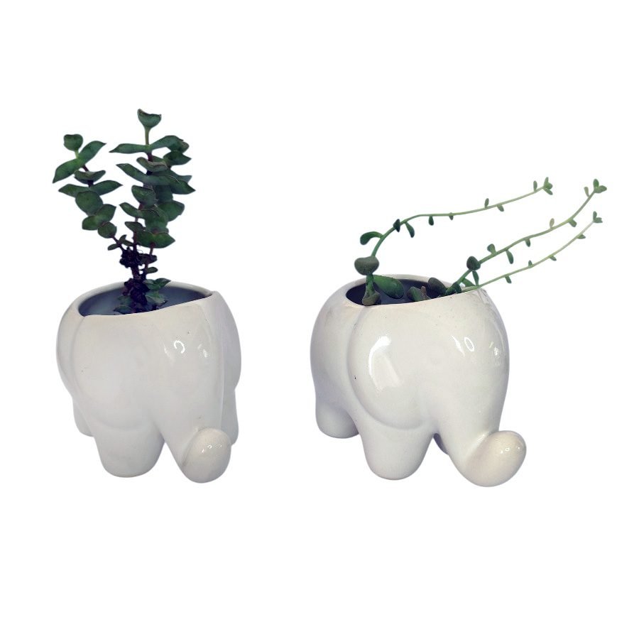 🐘 Set de 2 Macetas de Cerámica en Forma de Elefante – Elegancia y Buena Energía para tu Hogar