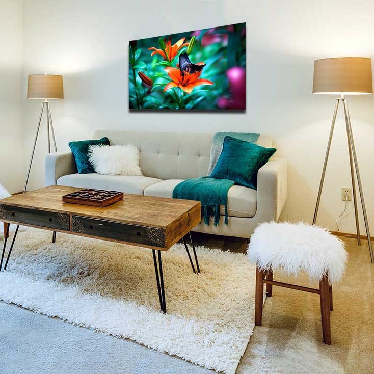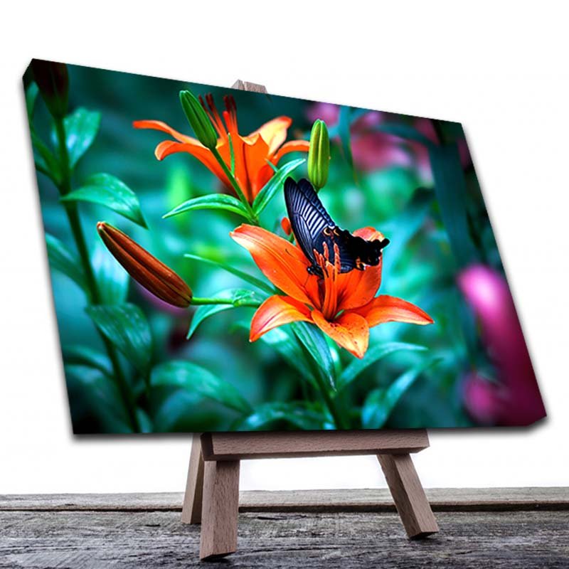 Cuadro Decorativo Canvas Mariposa en Lirio Naranja
