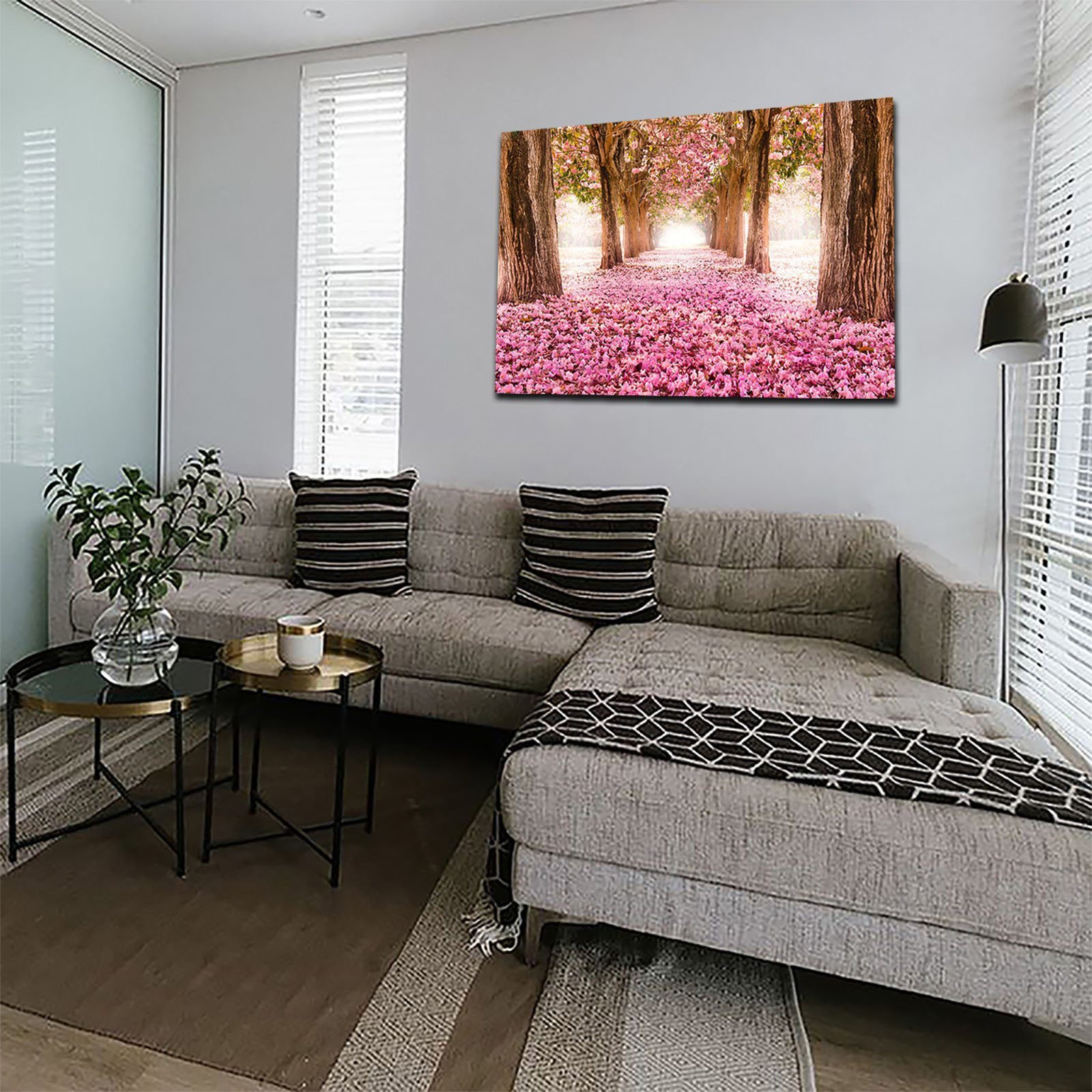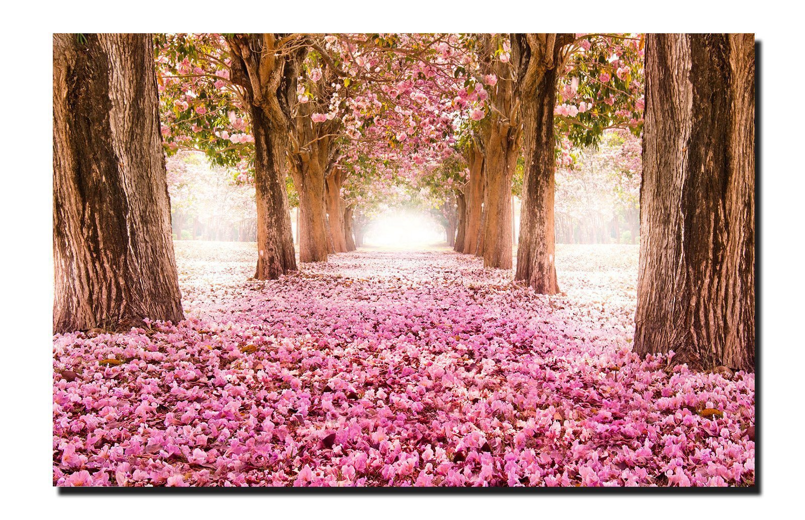 Cuadro Decorativo Canvas Paisaje de Camino de Pétalos Rosas en el Bosque