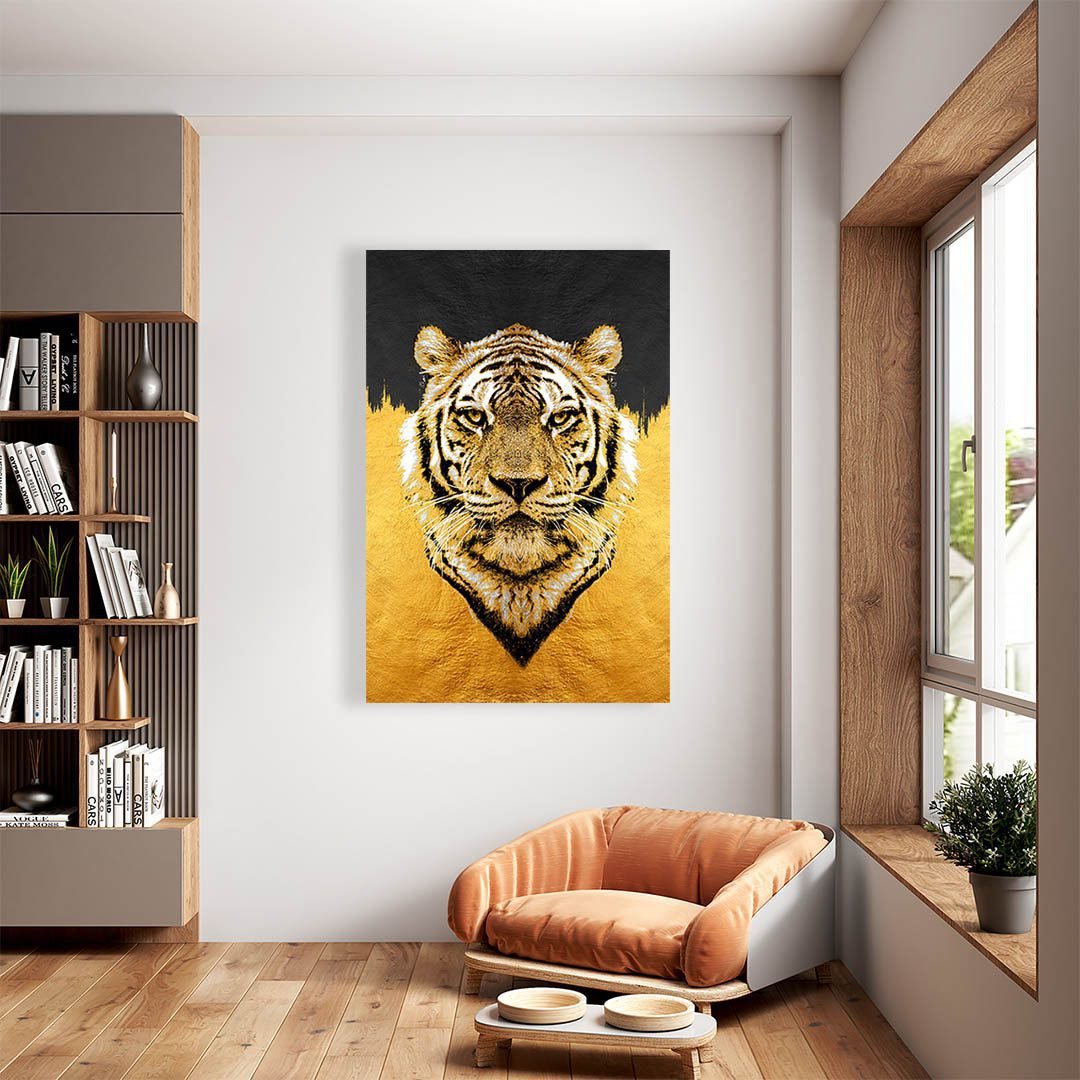 Cuadro Decorativo Cara de Tigre en Dorado #126