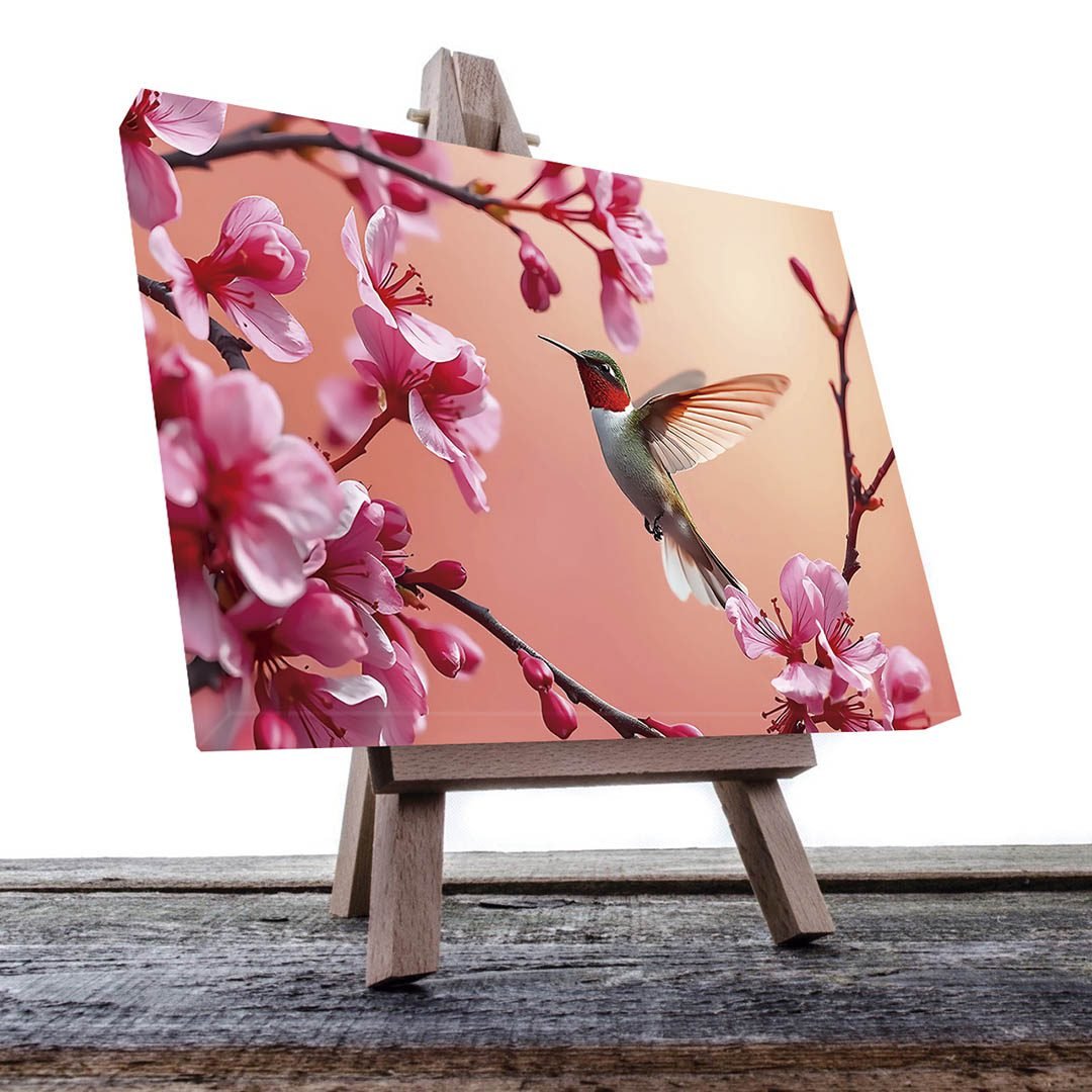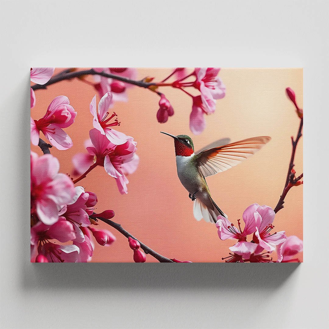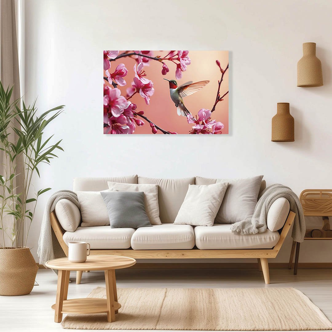 Cuadro decorativo Colibrí rojo con blanco y flores rosas #33