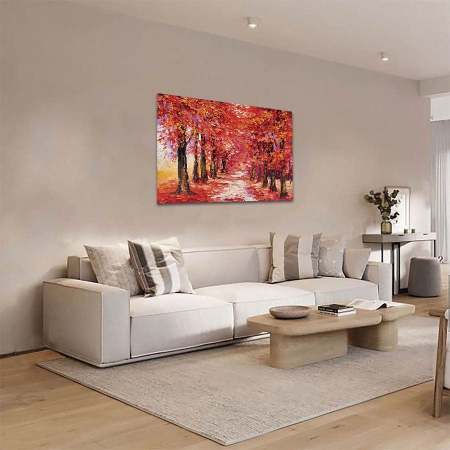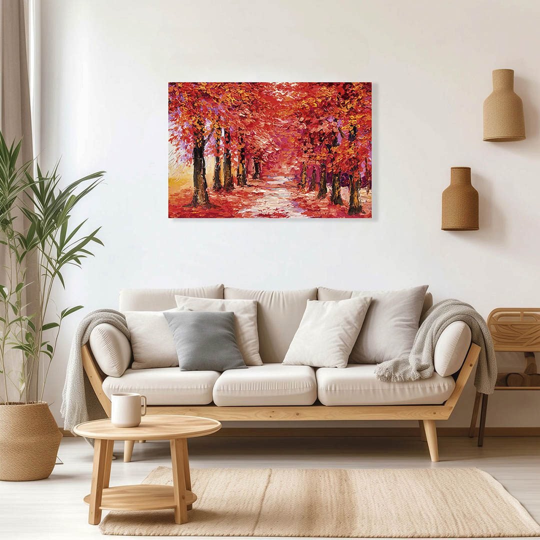 Cuadro Decorativo de Bosque Rojizo Estilo Oleo #09