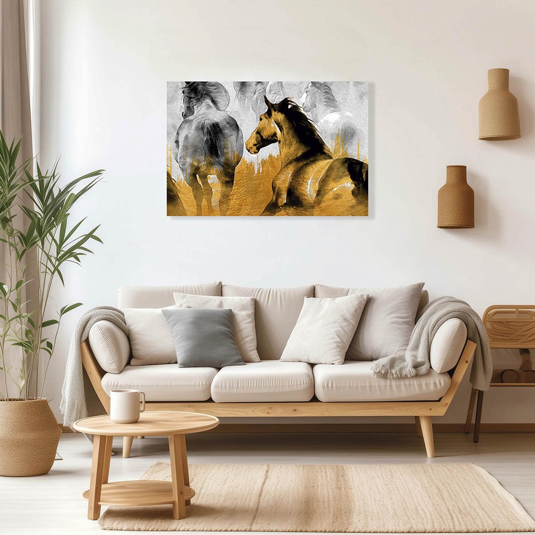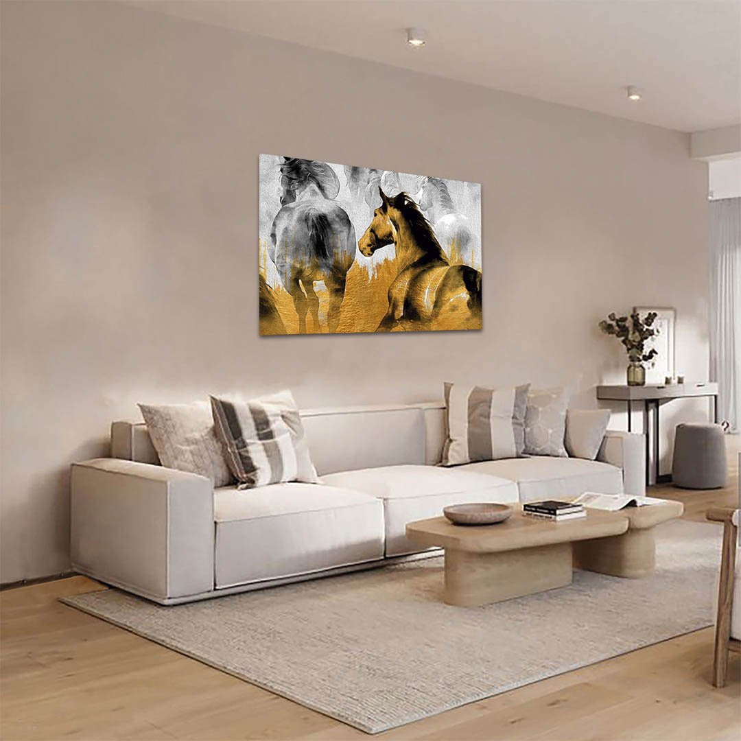 Cuadro Decorativo de Caballos en Dorado #160