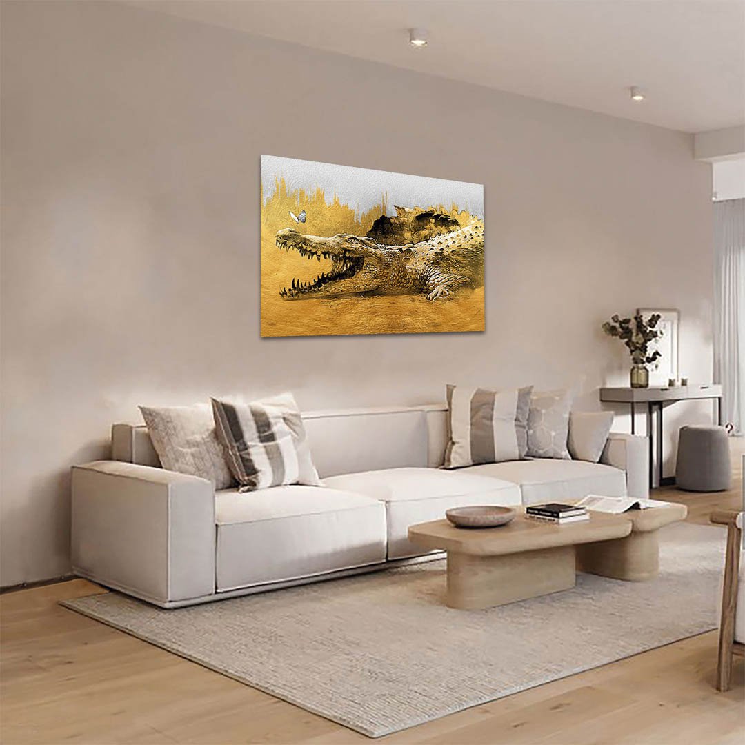 Cuadro Decorativo de Cocodrilo en Dorado #156