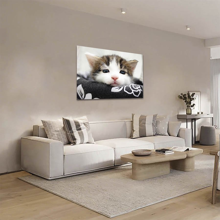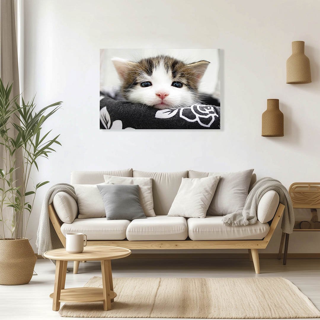 Cuadro Decorativo de Gato Blanco con Café #25