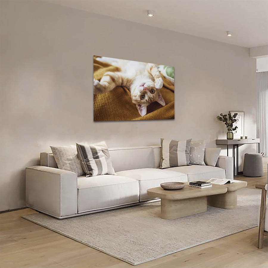Cuadro Decorativo de Gato Blanco con Café #26