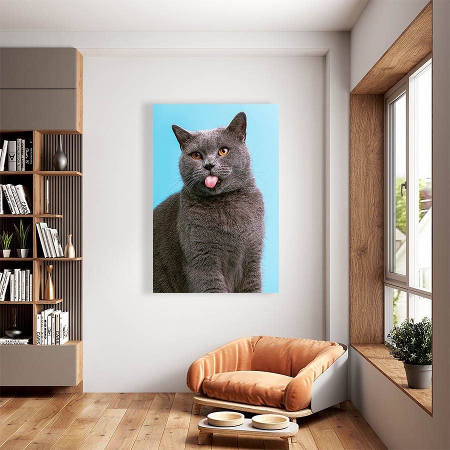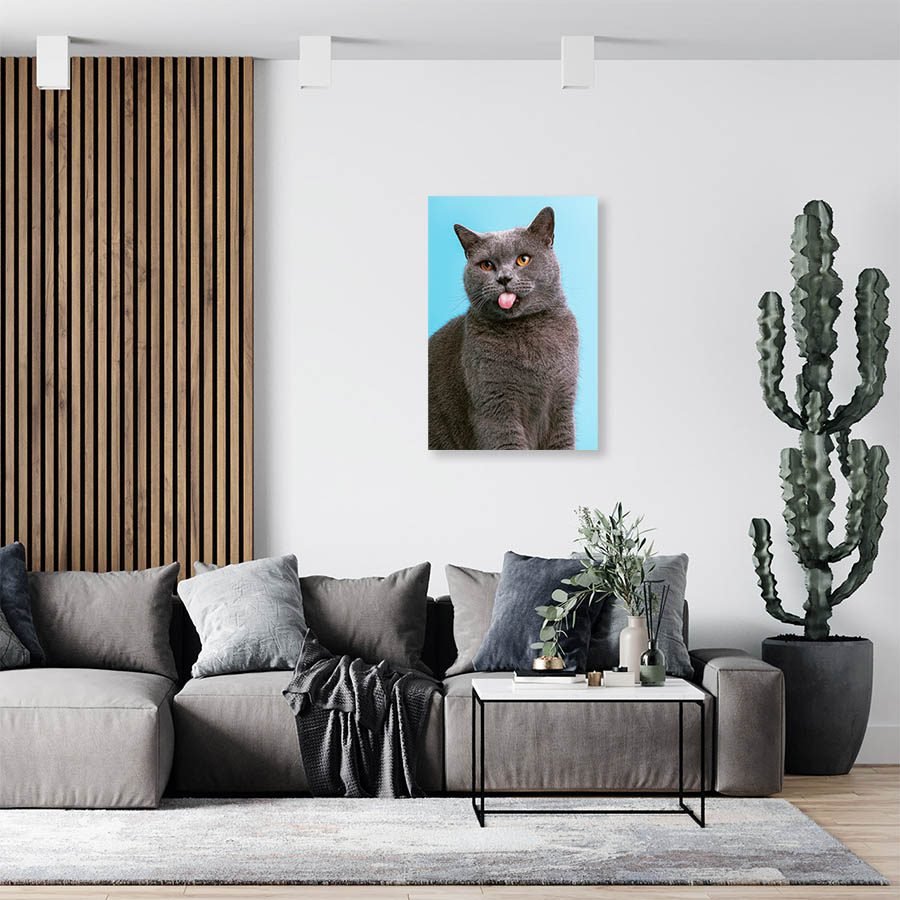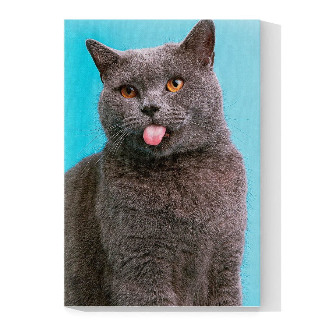 Cuadro Decorativo de Gato Gris Sacando la Lengua #515