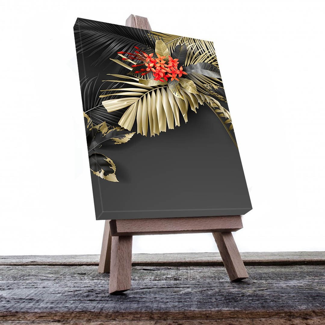 Cuadro Decorativo de Hojas Doradas y Negras #190