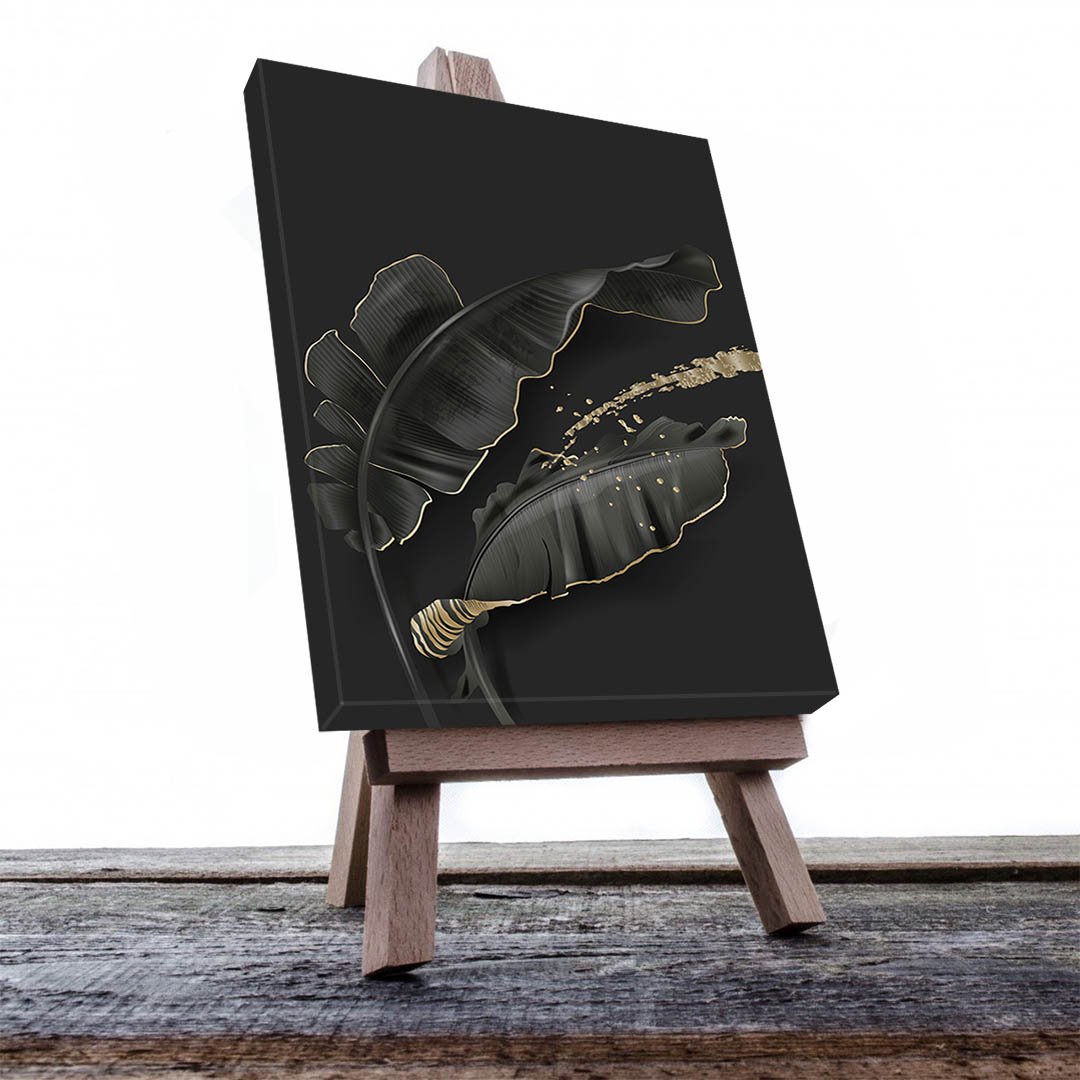 Cuadro Decorativo de Hojas Doradas y Negras #202