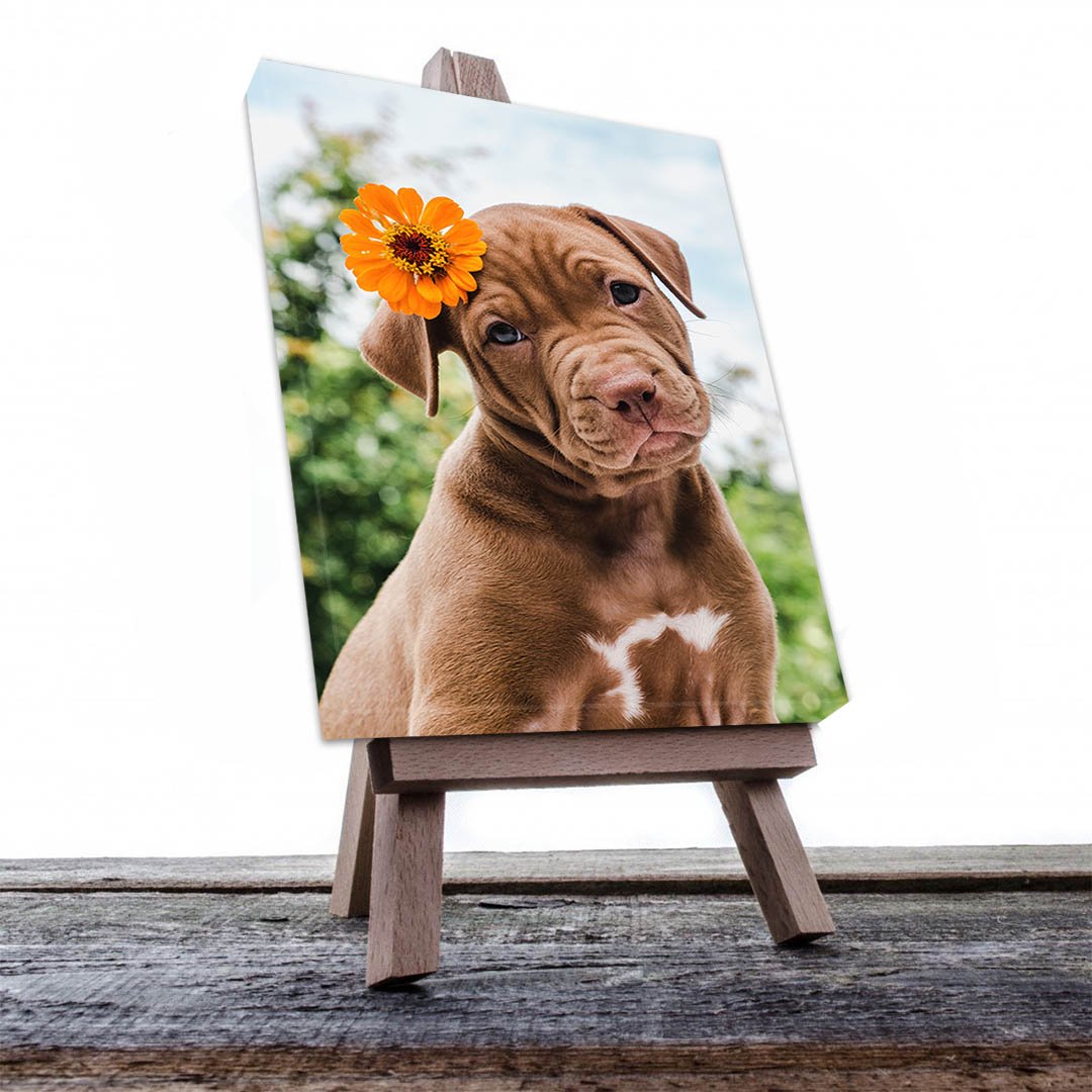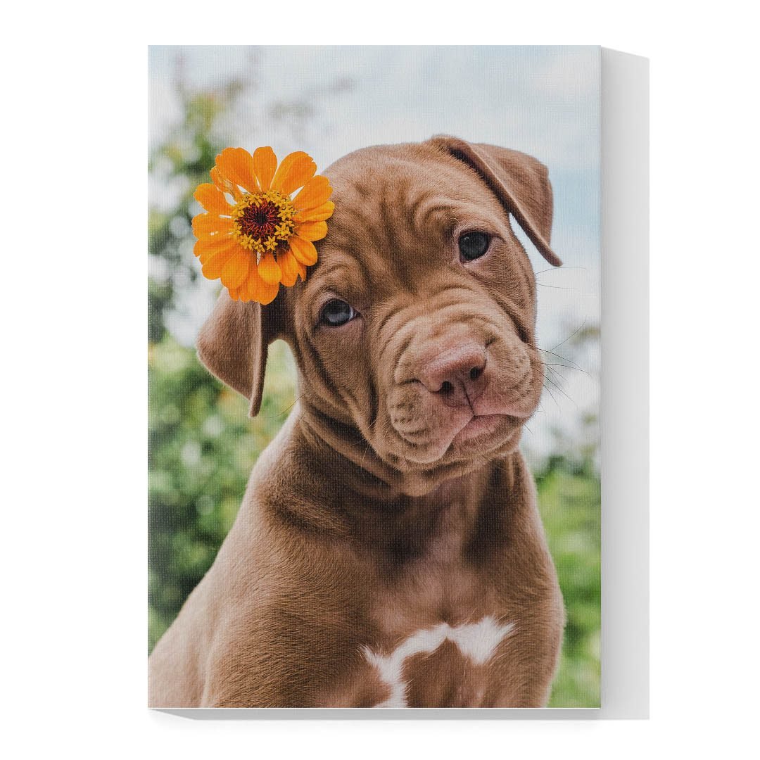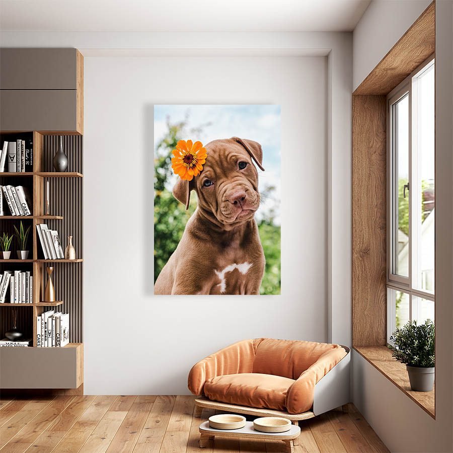 Cuadro Decorativo de Perro Pit Bull con Flor #513