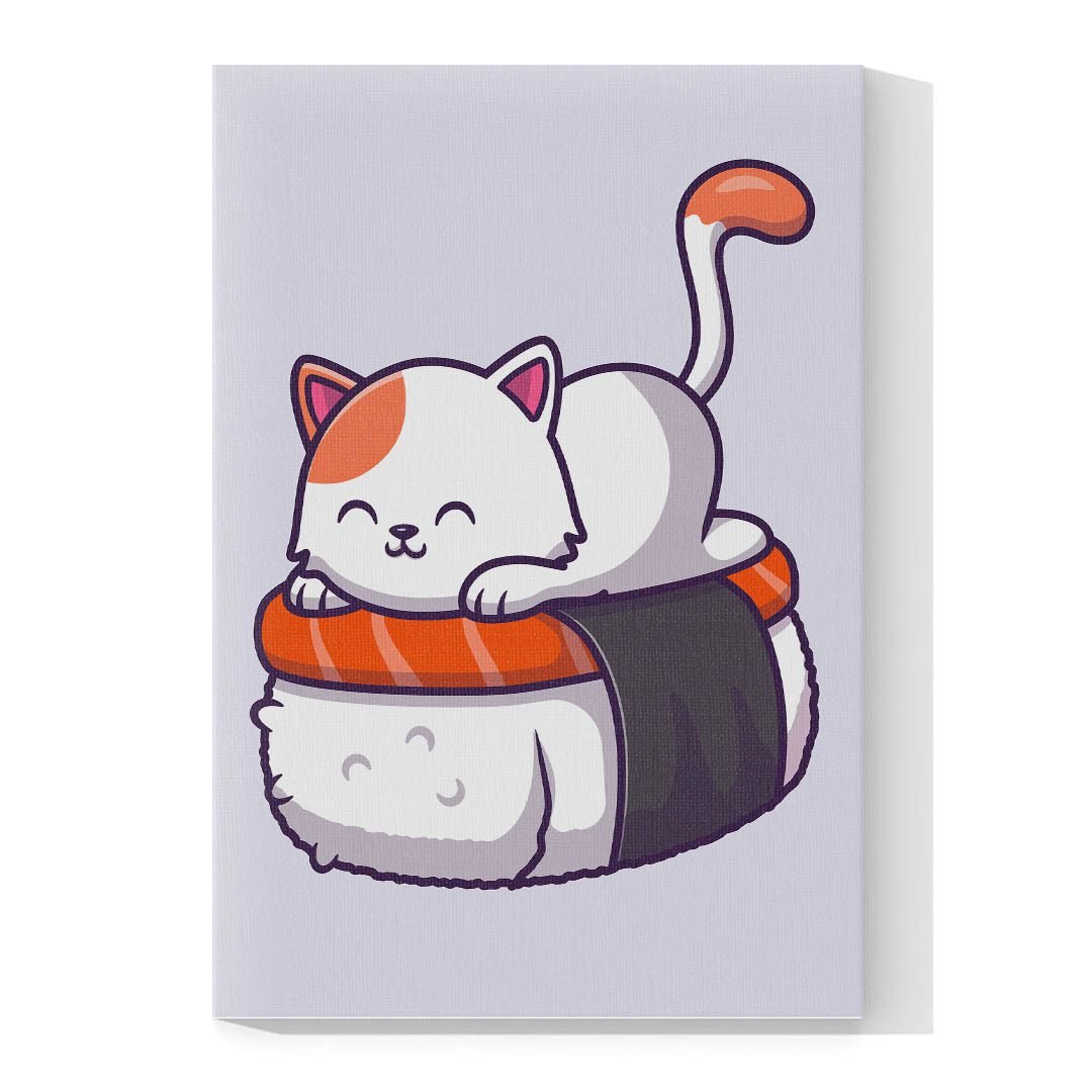 Cuadro Decorativo Dibujo Gato Blanco en su cama #582