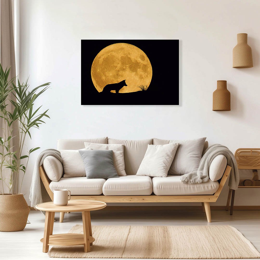 Cuadro Decorativo Lobo Bajo la Luna Roja