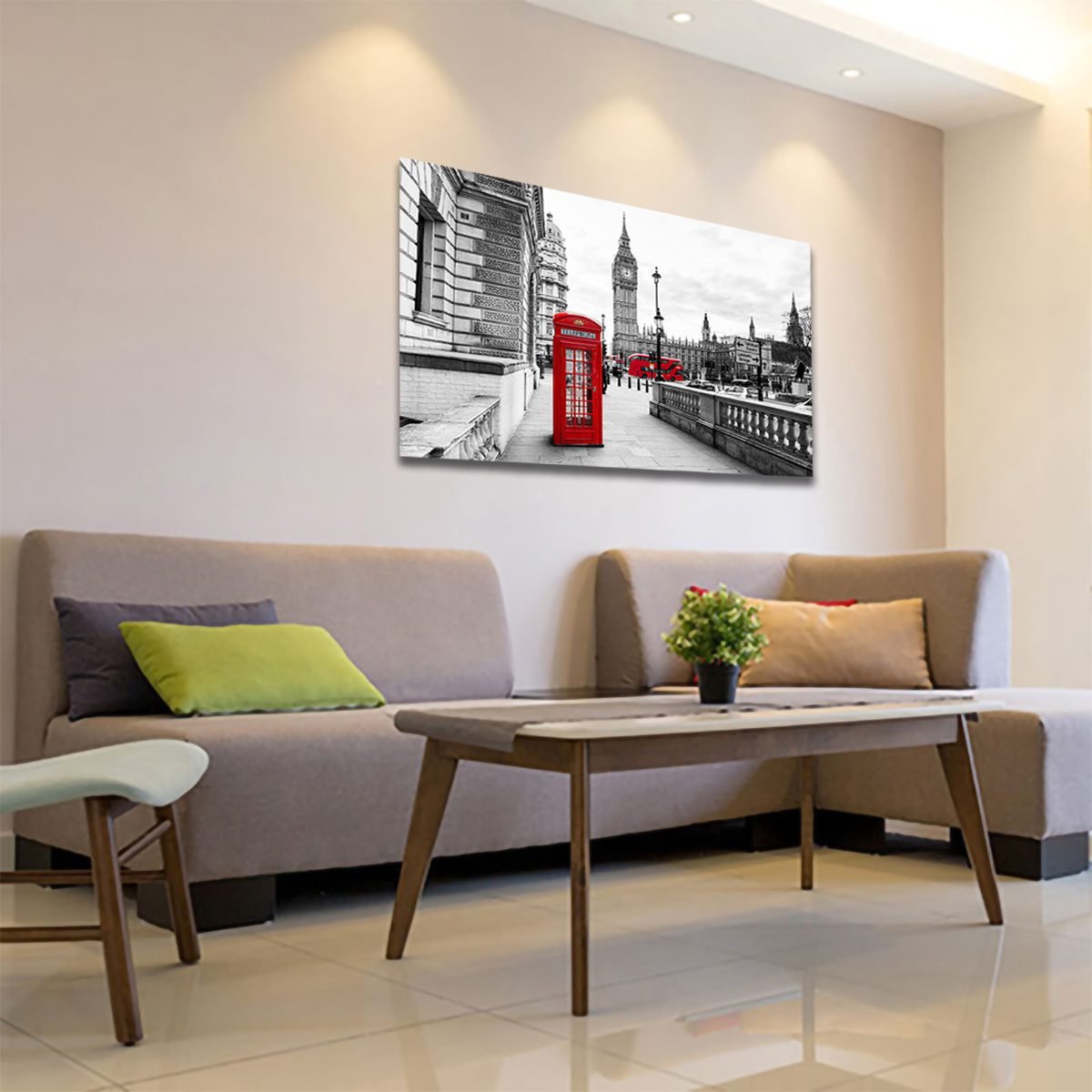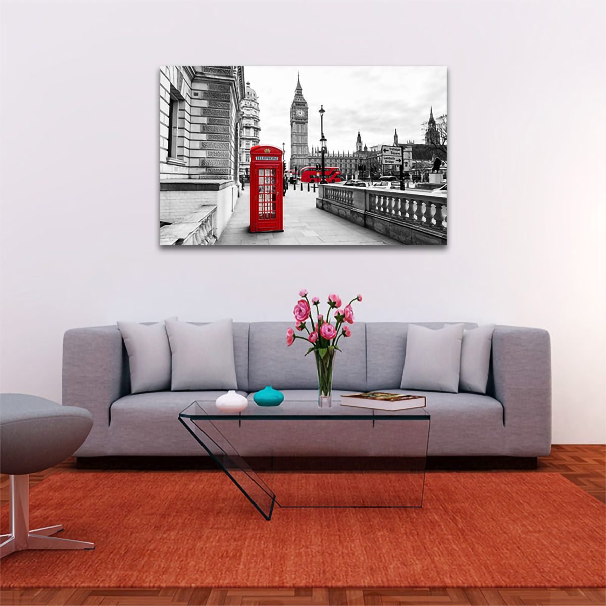 Cuadro Decorativo Londres Blanco Y Negro Con Vivos Rojos #11