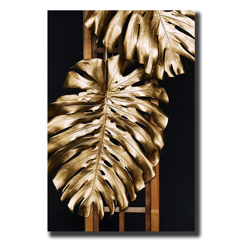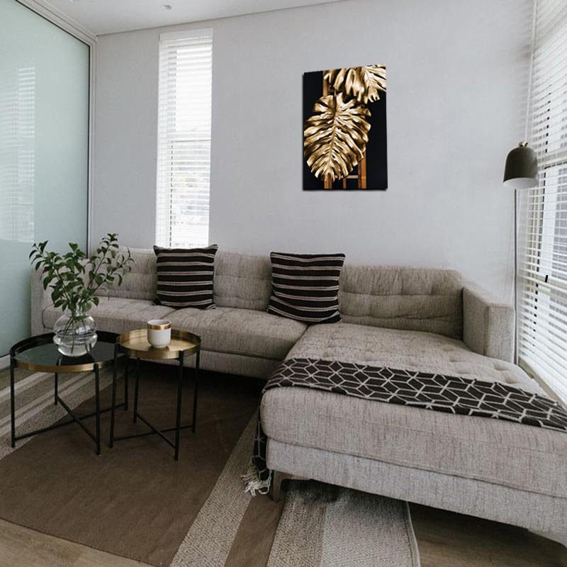 Cuadro Decorativo Moderno de hojas en dorado #53