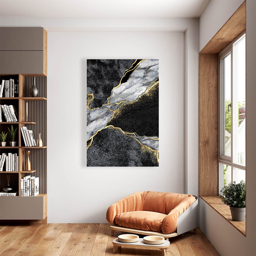 Cuadro Decorativo Moderno estilo Mármol en Dorado y Negro #179