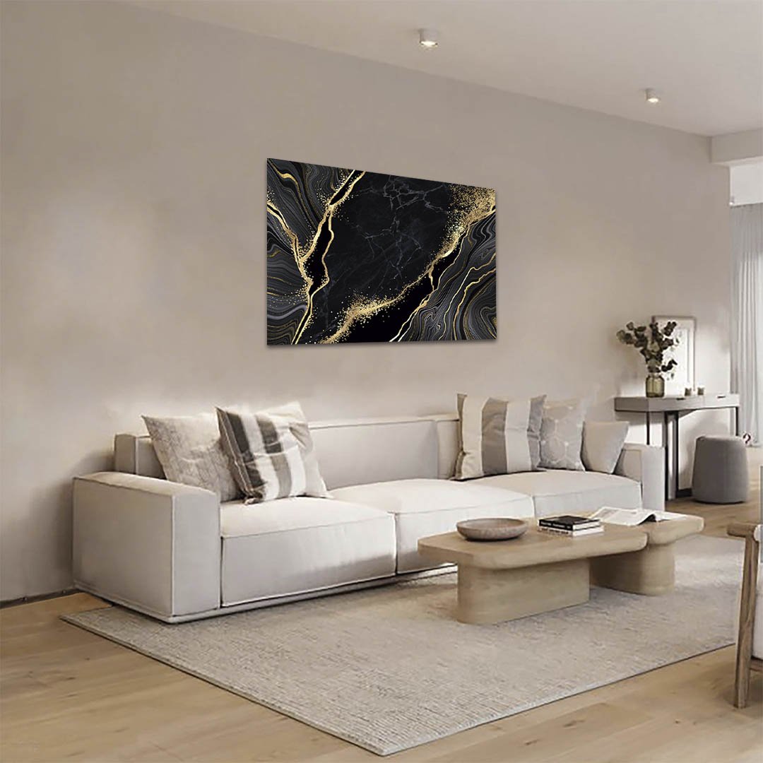 Cuadro Decorativo Moderno estilo mármol en Dorado y Negro