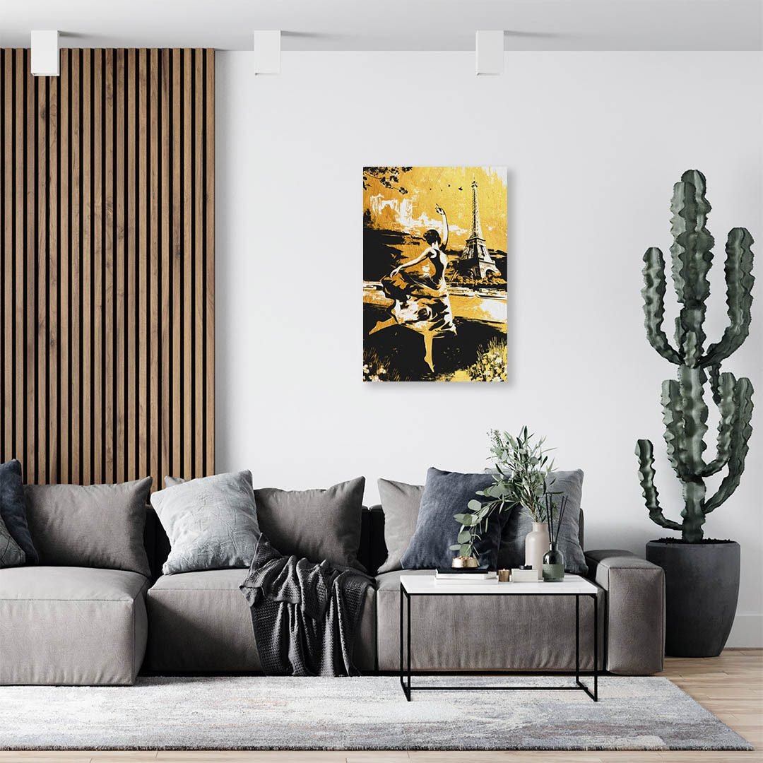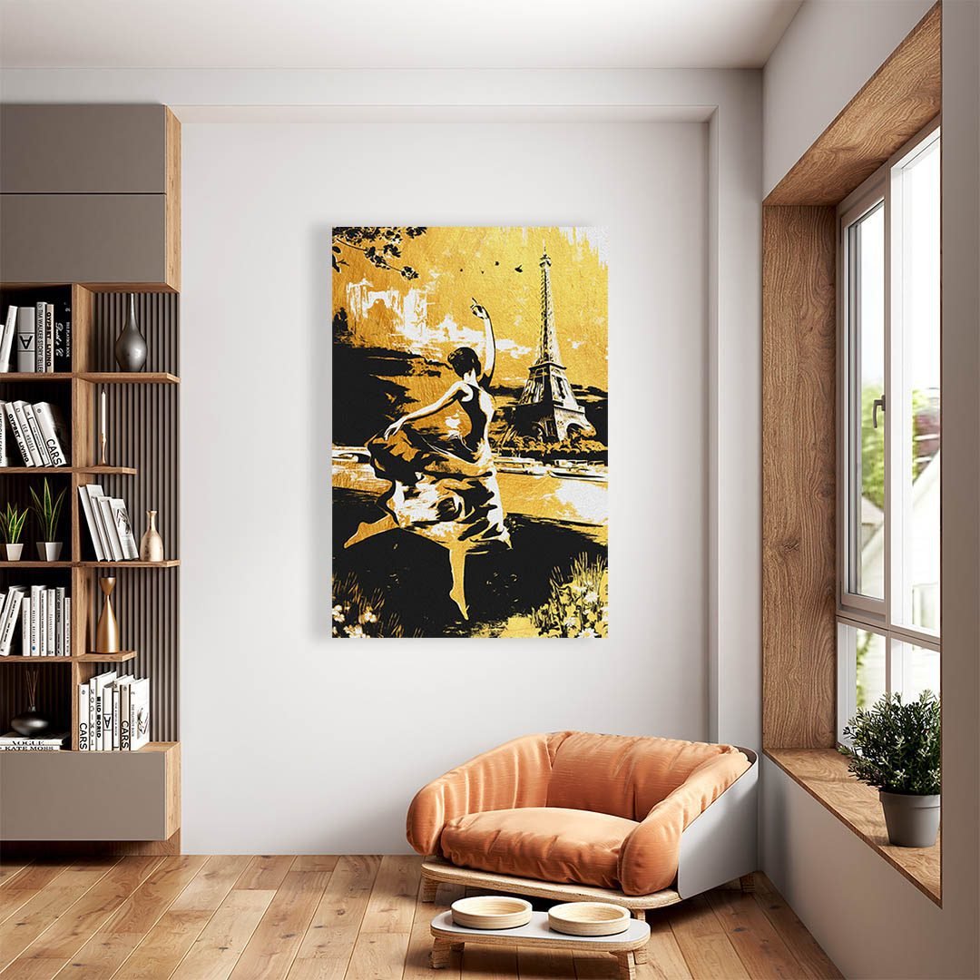 Cuadro Decorativo Mujer Bailando en Paris en Dorado