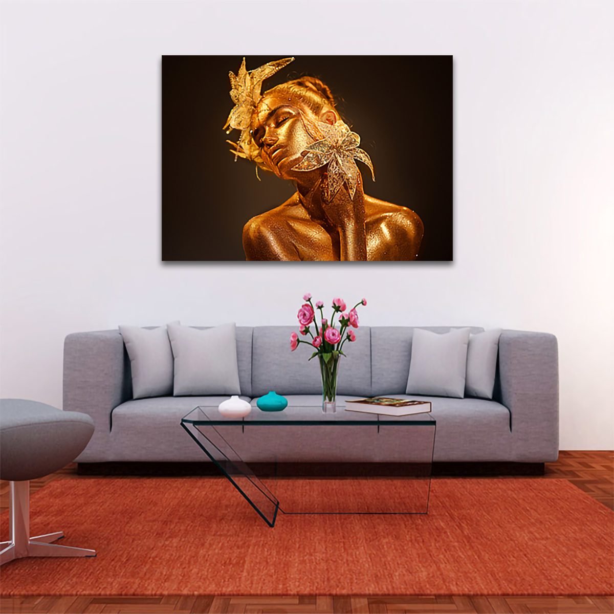 Cuadro Decorativo Mujer en Dorado Moderno