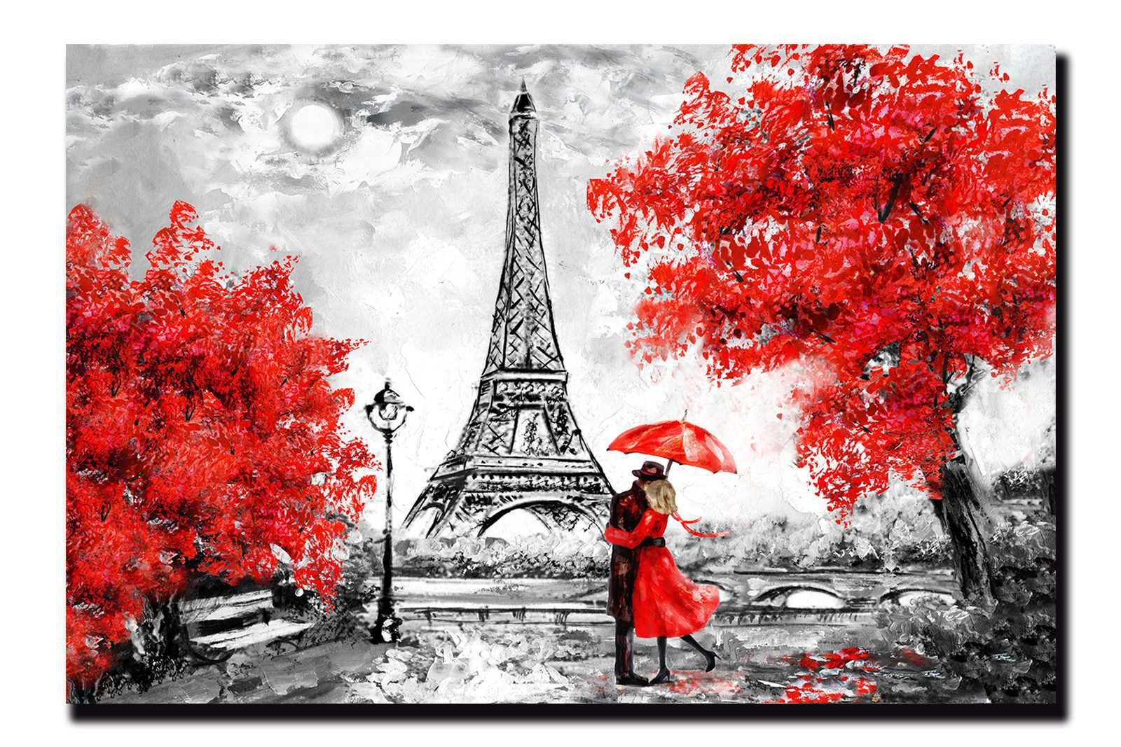 Cuadro Decorativo París Blanco Y Negro Con Vivos Rojos #3