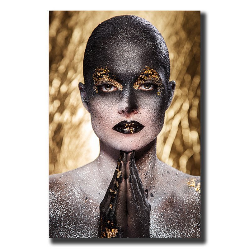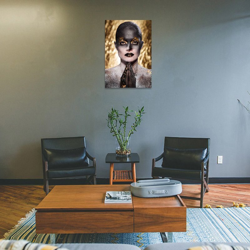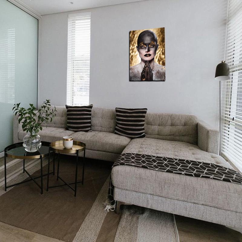 Cuadro Decorativo Rostro Mujer en Dorado y Negro #18