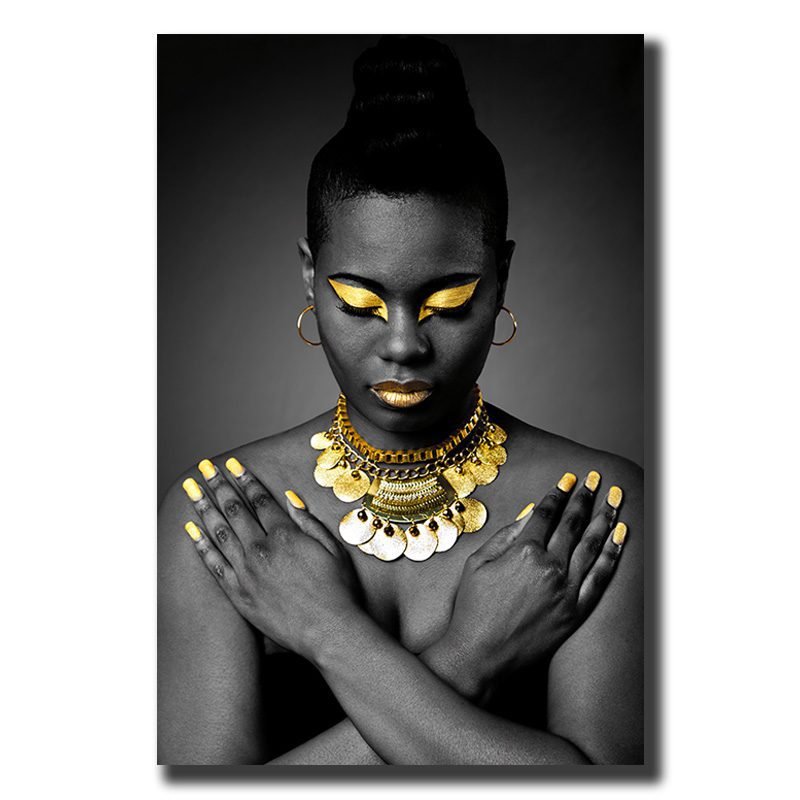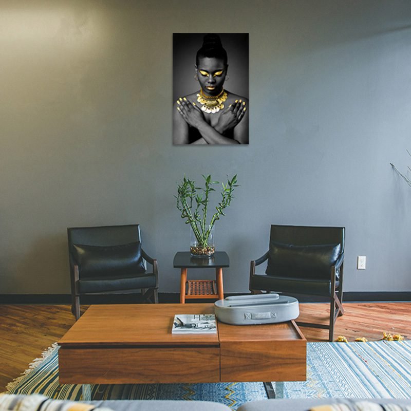 Cuadro Decorativo Rostro Mujer en Dorado y Negro #23