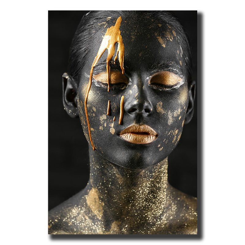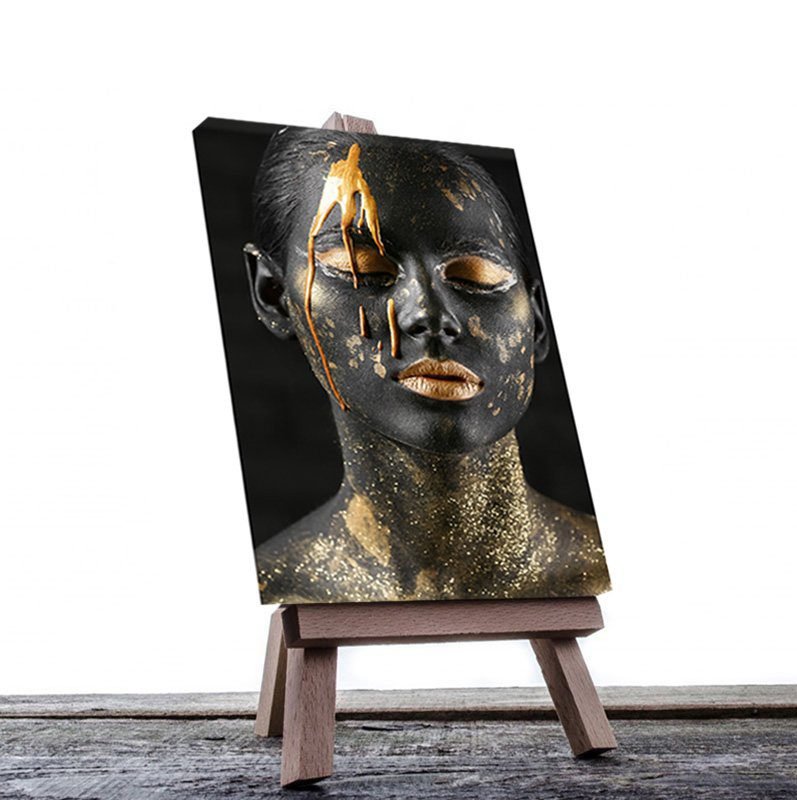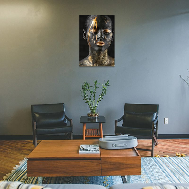 Cuadro Decorativo Rostro Mujer en Dorado y Negro #43