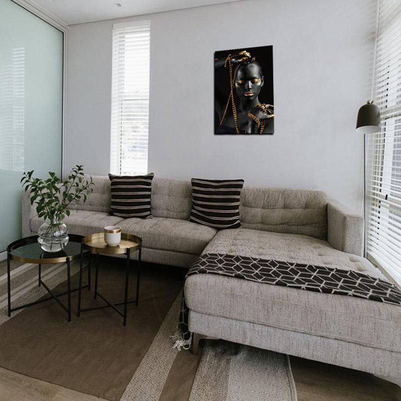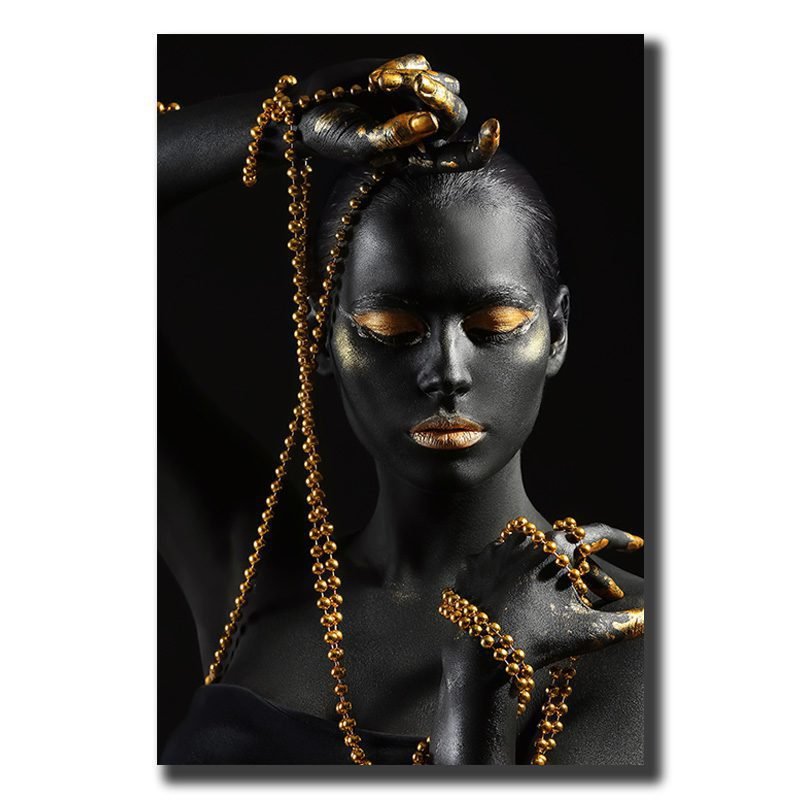 Cuadro Decorativo Rostro Mujer en Dorado y Negro #6