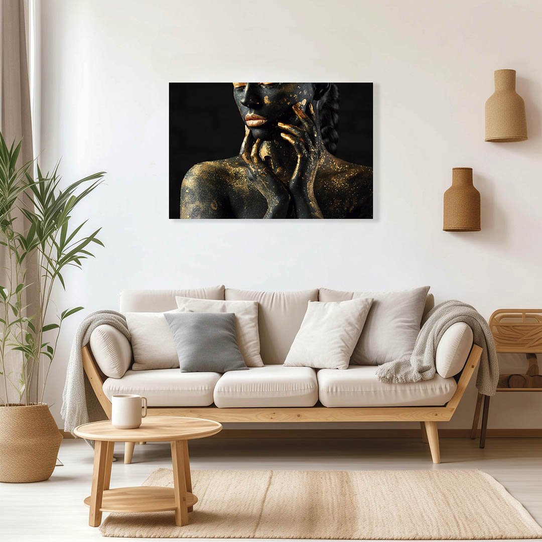 Cuadro Decorativo Rostro de Mujer en Dorado y Negro #127