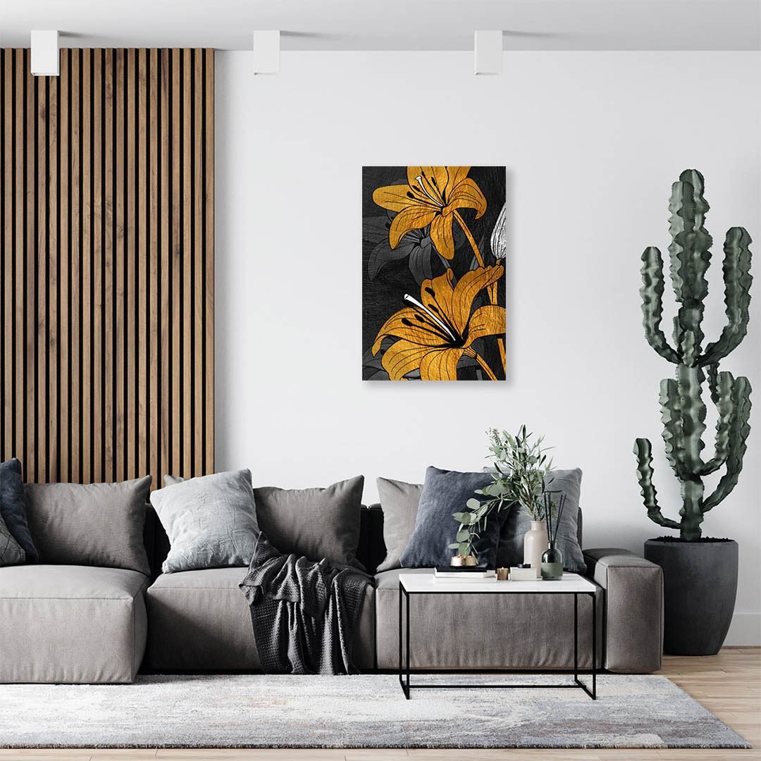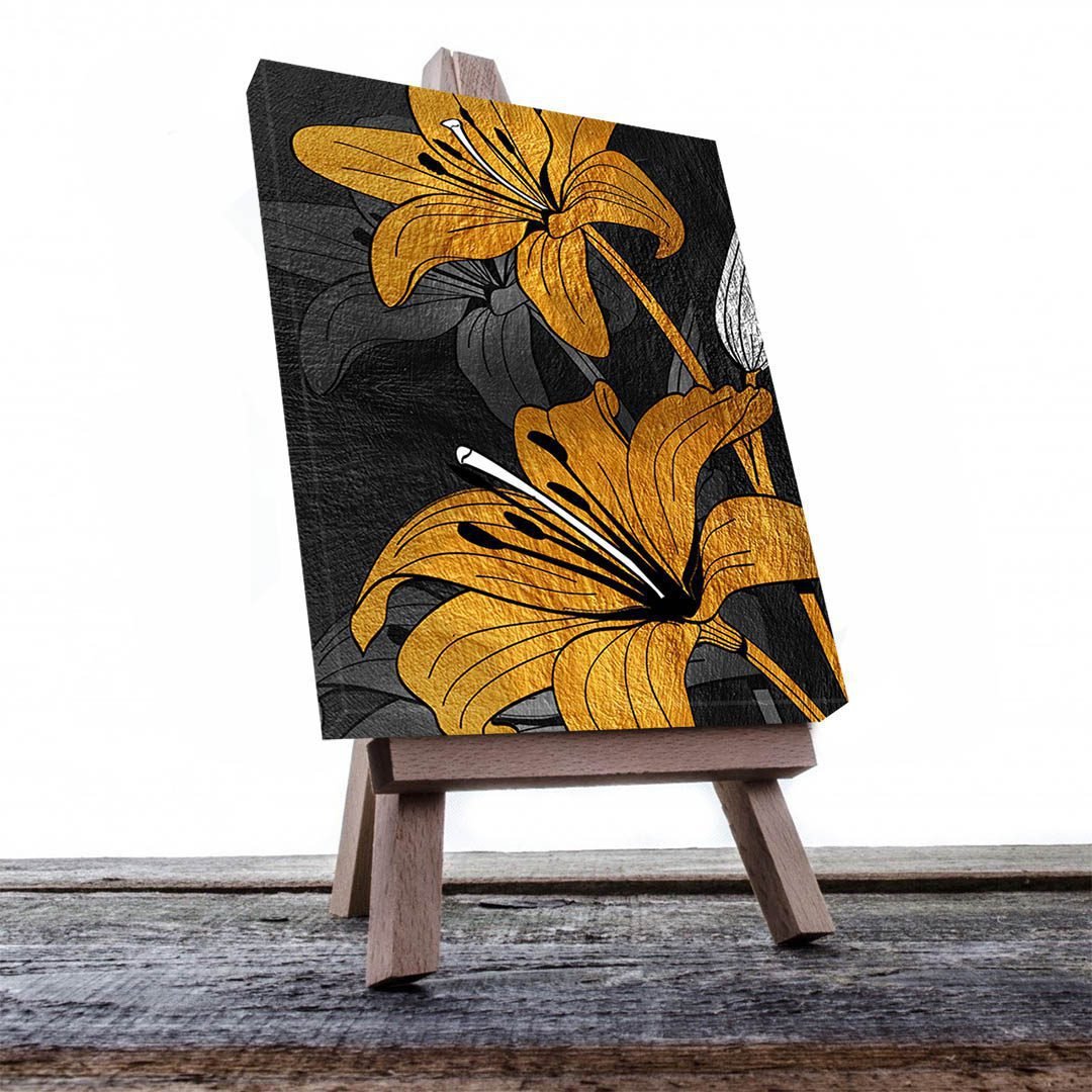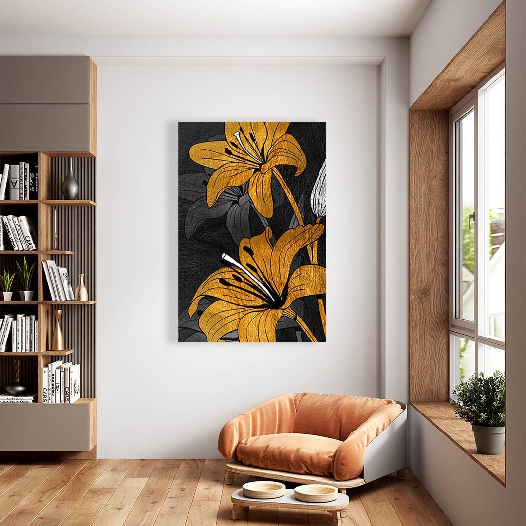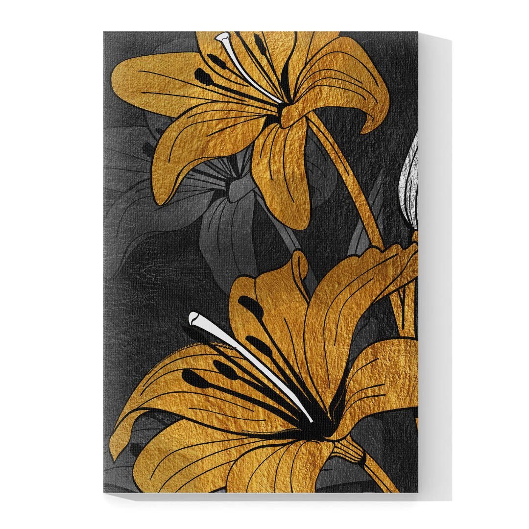 Cuadros Decorativo de Flores en Dorado y Negro #133
