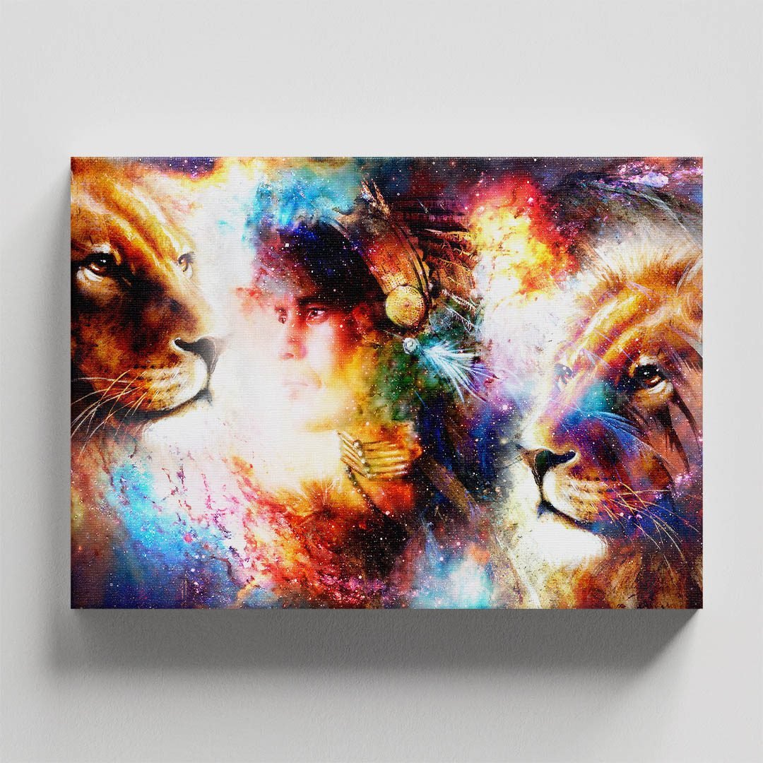 Cuadros Decorativos Leones y Amerindio Místico #75