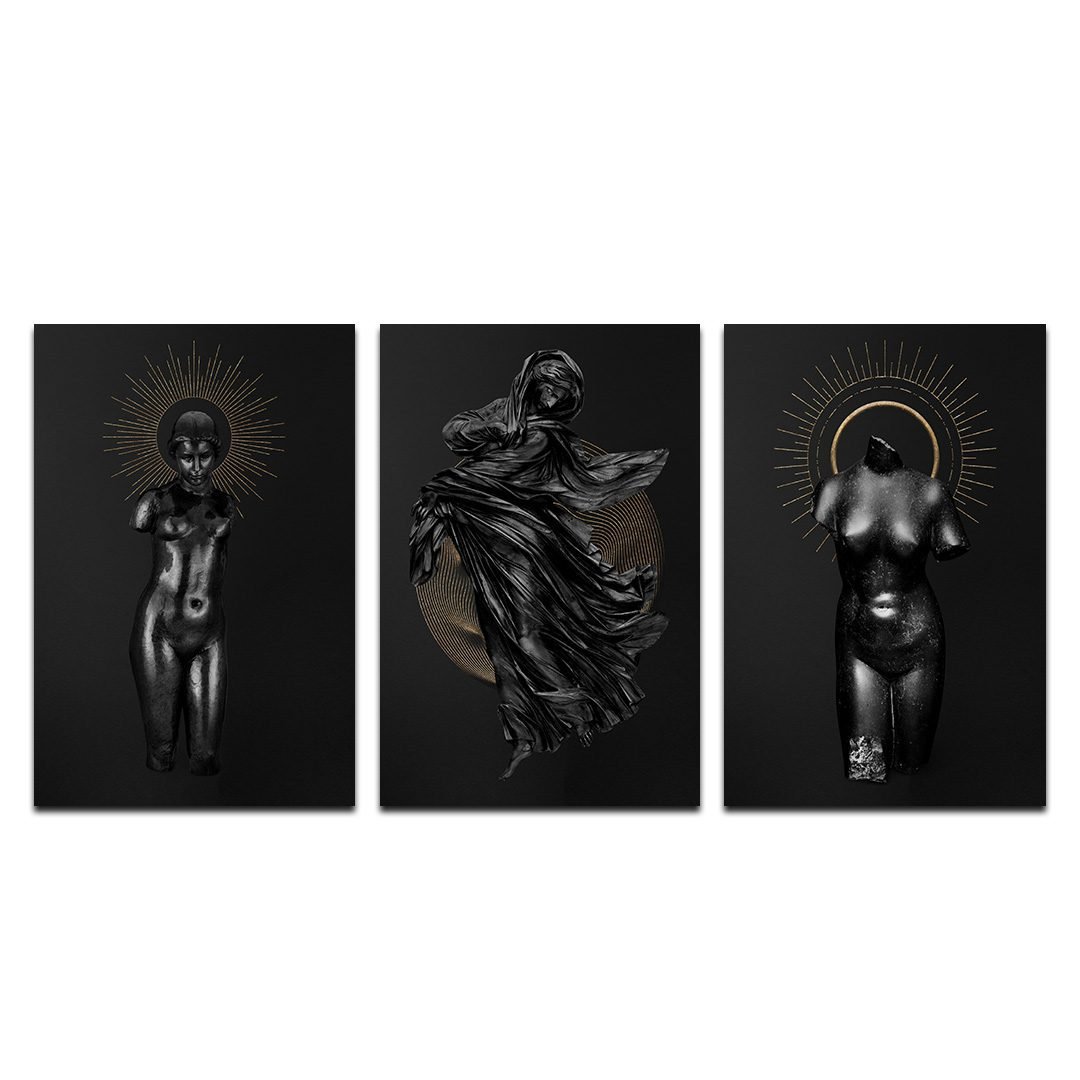 Set de 3 Cuadros Decorativos Figuras en color Negro y Dorado