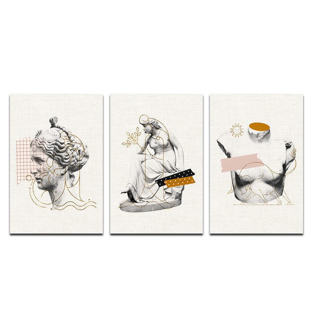 Set de 3 Cuadros Decorativos Figuras Griegas Modernos
