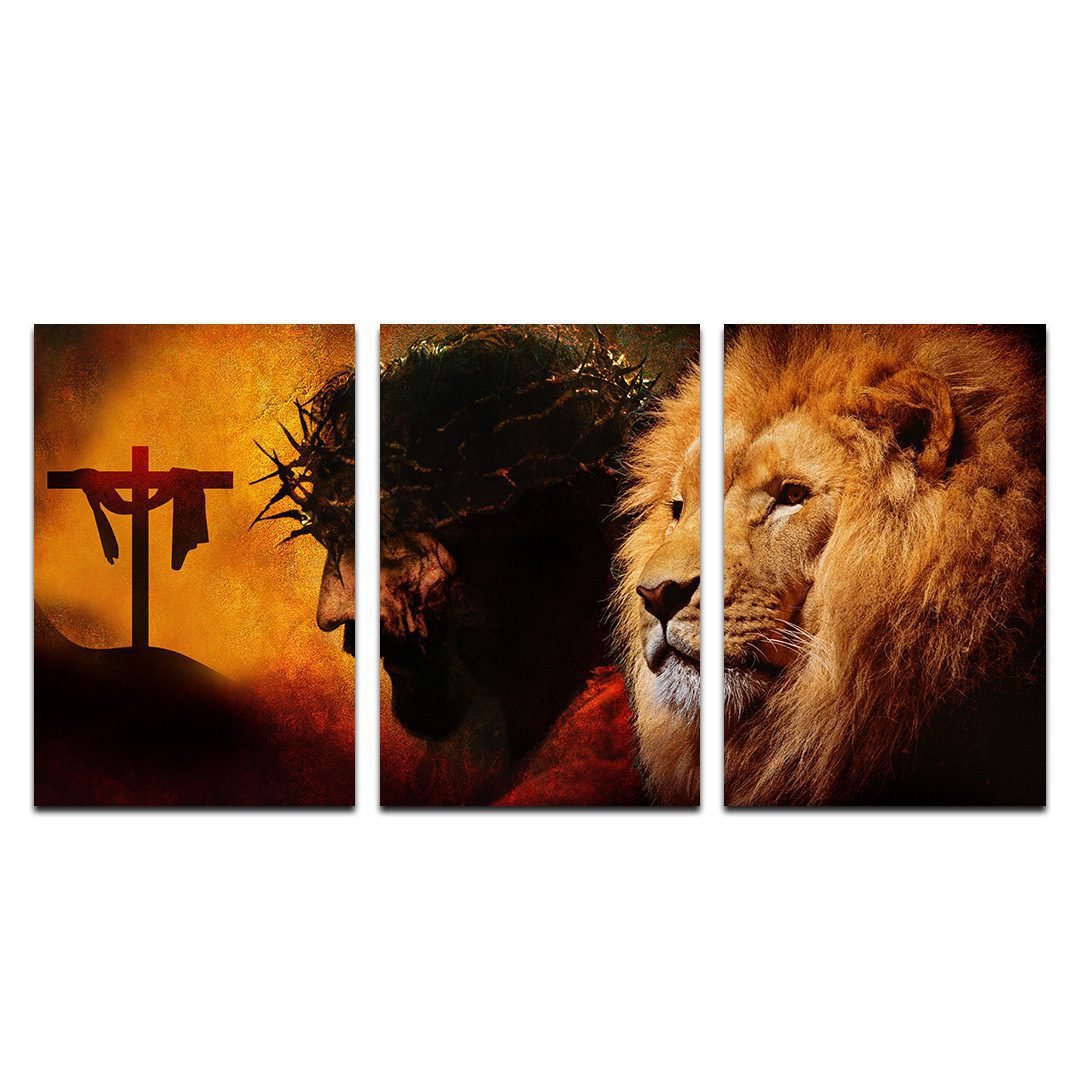 Set de 3 Cuadros Decorativos Religioso Sobre Jesús y El León